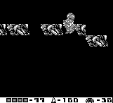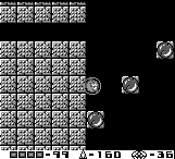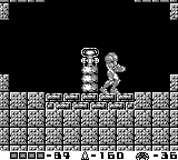 To enter this world, you'll need to be at the second to last ruin of the game (that has the Screw Attack). Go inside the ruin, to where the save point is. (Diagram 1) Now, go to the vertical shaft (that is scattered with blocks) to the right. (2) Turn into a ball. Allow yourself to fall down the left side of the shaft and do the select trick. You will (guaranteed) have to do it more that once, but keep trying! Once you manage to open up a hole, morph into a Spider Ball to break your fall on side of the wall. (3) Roll upward and into the hole, and pass through. Now you're in! But you're not completely in yet. (4) You've entered a large (and quite repetitive) area that has bits of Chozo Statues scattered around in it. (5) From from where you have just landed, Space Jump left for exactly two screens (when the screen has scrolled left twice). (6) Once you have gone left for two screens, allow yourself to fall. Position yourself where you can fall through the holes in the top of each screen. (7) After you fall for a few screens, you'll land in an area that looks like this. (8) You're in! But first, let me tell you where you can save your progress... From where you've just landed, move left (9) and fall downward, along the right wall. (10) When you see the ledge of the next cavern down, land on it. (11) Then, move right and through the cavern. (12) In the normal game, this cave is filled with spikes, but they won't be causing any problems here. Proceed right, and into the next room. Normally this room is filled with destroyable sand blocks, but in this Secret World they are save points! (13)