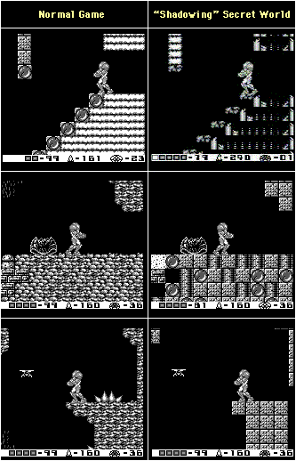 If you've played all of Metroid 2 and then entered a Secret World, you may have noticed how familiar the layout is. Although Secret Worlds are cut off from the game's map, they are normal parts of the game's map running with tiles from a different area of the game. Doesn't make sense, yes, so I put together a chart that can explain it better than I can.